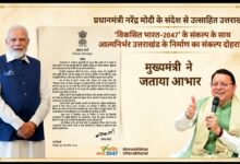 प्रधानमंत्री नरेंद्र मोदी के संदेश से उत्साहित उत्तराखंड,, मुख्यमंत्री ने जताया आभार, कहा – आपके नेतृत्व में विकास के नए आयाम स्थापित कर रहा देवभूमि प्रदेश,, ‘विकसित भारत-2047’ के संकल्प के साथ आत्मनिर्भर उत्तराखंड के निर्माण का संकल्प दोहराया