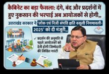 कैबिनेट का बड़ा फैसला: दंगे, बंद और प्रदर्शनों में हुए नुकसान की भरपाई अब आयोजकों से होगी,, उत्तराखंड सरकार ने ‘लोक एवं निजी संपत्ति क्षति वसूली नियमावली-2025’ को दी मंजूरी,, प्रदर्शन की अनुमति से पहले आयोजकों को देनी होगी जिम्मेदारी की लिखित गारंटी