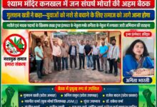 नशे के खिलाफ सामाजिक एकजुटता की पहल,, श्याम मंदिर कनखल में जन संघर्ष मोर्चा की अहम बैठक,, गुलशन खत्री ने कहा—युवाओं को नशे से बचाने के लिए समाज को आगे आना होगा,, नशीले एवं मादक पदार्थों के खिलाफ सख्त ड्रग्स इंस्पेक्टर अनीता भारती के नेतृत्व में लगातार जारी अभियान की सराहना