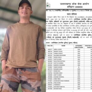 рдЗрд╕ рдкрд░реАрдХреНрд╖рд╛ рдореЗрдВ рджрд░реЛрдЧрд╛ рдкрдж рдХреЗ рд▓рд┐рдП рдЕрдмреНрджреБрд▓ рдХрд╛рджрд┐рд░ рдиреЗ рд╢реАрд░реНрд╖ рд╕реНрдерд╛рди рдкреНрд░рд╛рдкреНрдд рдХрд┐рдпрд╛ рд╣реИред рд╡рд╣реАрдВ рдкреБрд▓рд┐рд╕ рдЙрдк рдирд┐рд░реАрдХреНрд╖рдХ (рдПрд╕рдЖрдИ) рдЕрднрд┐рд╕реВрдЪрдирд╛ рдкрдж рдХреЗ рд▓рд┐рдП рдирд╡реАрди рдЪрдВрджреНрд░ рдЬреЛрд╢реА рдиреЗ рдЯреЙрдк рдХрд┐рдпрд╛ рд╣реИред рдЧреБрд▓реНрдордирд╛рдпрдХ рдкреБрд░реБрд╖ рдкрдж рдХреЗ рд▓рд┐рдП рд╡рд┐рдЬрдп рднрдЯреНрдЯ рдиреЗ рд╕рд░реНрд╡реЛрдЪреНрдЪ рдЕрдВрдХ рд╣рд╛рд╕рд┐рд▓ рдХрд┐рдП рд╣реИрдВред рдЪрдпрдирд┐рдд рдЙрдореНрдореАрджрд╡рд╛рд░реЛрдВ рдореЗрдВ рдЗрд╕ рд╕рдлрд▓рддрд╛ рдХреЛ рд▓реЗрдХрд░ рдЦреБрд╢реА рдХреА рд▓рд╣рд░ рд╣реИ рдФрд░ рд╡реЗ рдЬрд▓реНрдж рд╣реА рдЙрддреНрддрд░рд╛рдЦрдВрдб рдкреБрд▓рд┐рд╕ рд╕реЗрд╡рд╛ рдореЗрдВ рдЕрдкрдиреА рдЬрд┐рдореНрдореЗрджрд╛рд░реА рдирд┐рднрд╛рдиреЗ рдХреЗ рд▓рд┐рдП рддреИрдпрд╛рд░ рд╣реЛрдВрдЧреЗред