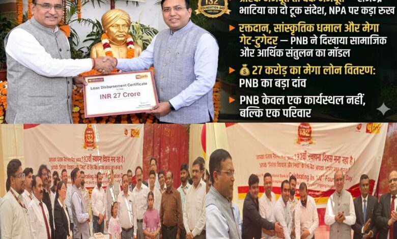 PNB का 132वां स्थापना दिवस: करोड़ों के ऋण वितरण के साथ शक्ति प्रदर्शन, ग्राहकों को बनाया विकास का केंद्र,, 🟡 “ग्राहक मजबूत तो बैंक मजबूत”—राजेन्द्र भाटिया का दो टूक संदेश, NPA पर कड़ा रुख,, 🟢 रक्तदान, सांस्कृतिक धमाल और मेगा गेट-टुगेदर—PNB ने दिखाया सामाजिक और आर्थिक संतुलन का मॉडल,, 🏦 “ग्राहक ही भगवान”—प्रकाश रंजन का भावनात्मक लेकिन स्पष्ट संदेश,, 💰 27 करोड़ का मेगा लोन वितरण: PNB का बड़ा दांव,,PNB केवल एक कार्यस्थल नहीं, बल्कि एक परिवार,, 📈 PNB का बदलता स्वरूप: परंपरा से आधुनिकता की ओर