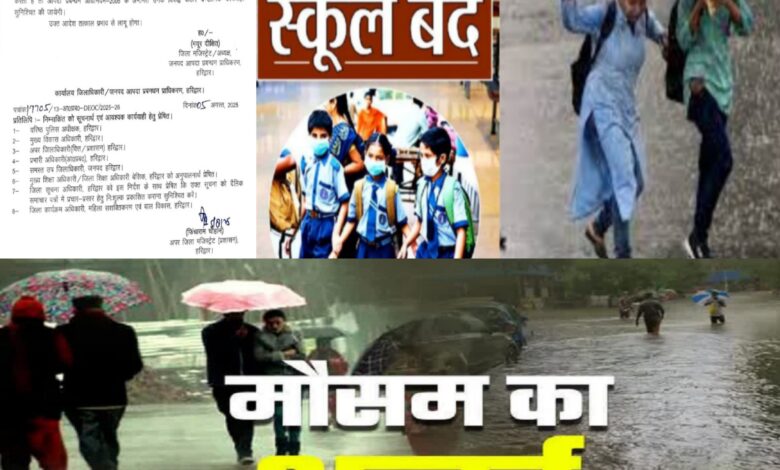 इन्तजार रजा हरिद्वार- भारी बारिश का रेड अलर्ट: कल भी हरिद्वार जिले के सभी स्कूल और आंगनबाड़ी केंद्र 6 अगस्त को रहेंगे बंद,,