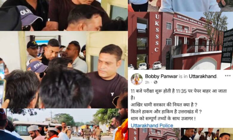 उत्तराखंड अधीनस्थ सेवा चयन आयोग (यूकेएसएसएससी) की स्नातक स्तरीय भर्ती परीक्षा को लेकर रविवार को उस समय हड़कंप मच गया जब पेपर शुरू होने के कुछ ही देर बाद सोशल मीडिया पर पेपर लीक होने का दावा किया गया। स्वाभिमान मोर्चा के अध्यक्ष बॉबी पंवार ने अपनी फेसबुक प्रोफाइल पर परीक्षा के कथित प्रश्नपत्र के अंश साझा किए और यह पोस्ट देखते ही देखते वायरल हो गई। पुलिस-प्रशासन अलर्ट मोड में आ गया और हरिद्वार पहुंचे बॉबी पंवार को हिरासत में लेकर पूछताछ शुरू कर दी गई।