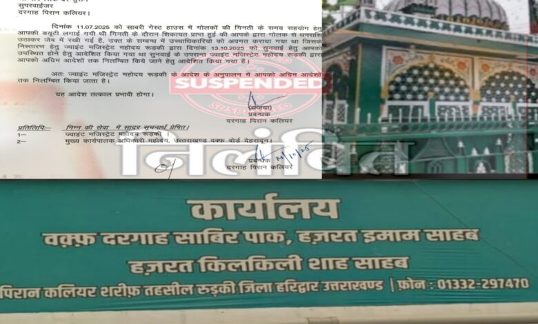 दरगाह पिरान कलियर में गोलक गिनती घोटाले के बाद हुआ यह निलंबन सिर्फ एक प्रशासनिक कदम नहीं, बल्कि उस गहरे जड़ें जमा चुके सिस्टम के खिलाफ चेतावनी है जो वर्षों से कुछ रसूखदार हाथों के इशारों पर चलता रहा है। अब देखना यह है कि —