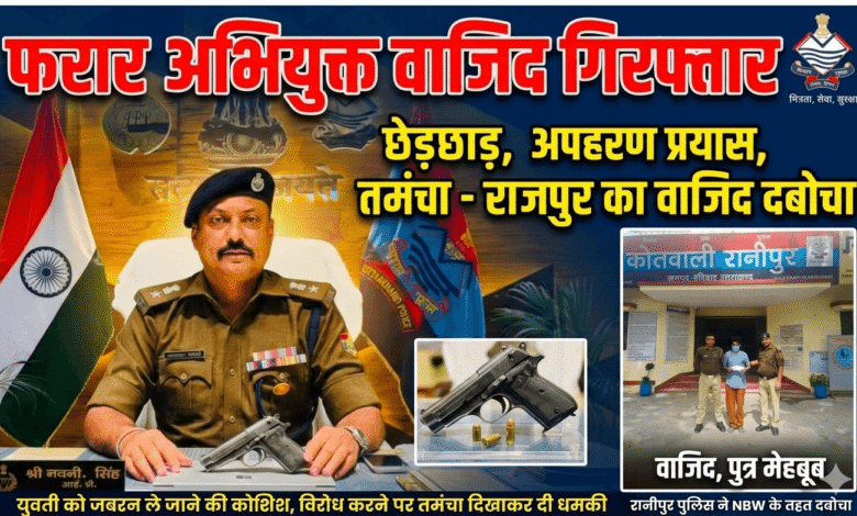 छेड़छाड़ और अपहरण के प्रयास का आरोपी राजपुर निवासी वाजिद पुत्र महबूब गिरफ्तार,, युवती को जबरन ले जाने की कोशिश, विरोध करने पर तमंचा दिखाकर दी धमकी,, रानीपुर पुलिस ने फरार चल रहे आरोपी को NBW के तहत तमंचे और जिंदा कारतूस के साथ दबोचा
