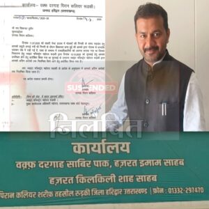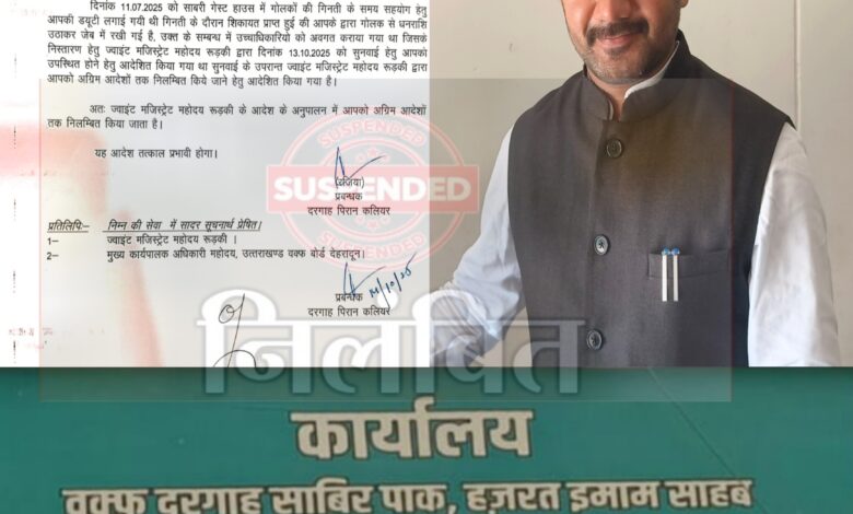 धामी सरकार की जीरो टॉलरेंस नीति पर सेठ का सख्त अमल — दरगाह सुपरवाइजर राव सिकंदर हुसैन निलंबित, पारदर्शिता की नई मिसाल