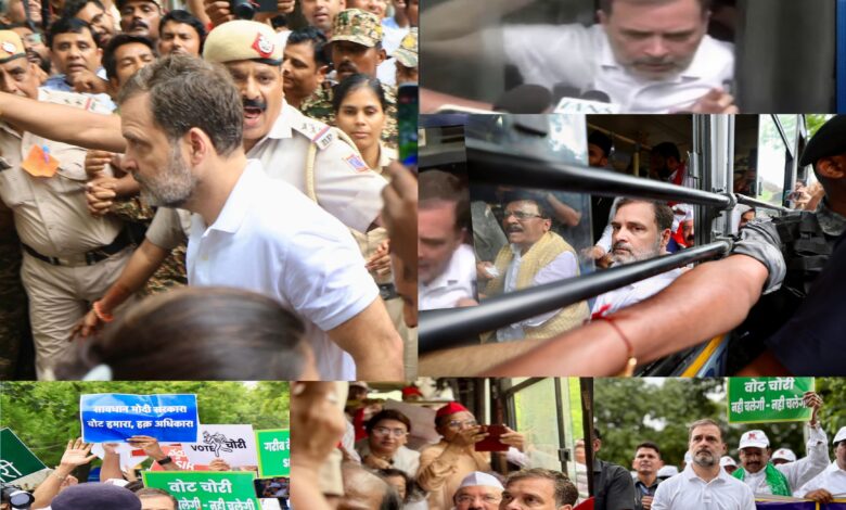 चुनाव आयोग जाते समय राहुल गांधी को हिरासत में लिया,, वोट चोरी के आरोप पर गरमाया राजनीतिक माहौल,, लोकतंत्र और संविधान की रक्षा का संकल्प दोहराया