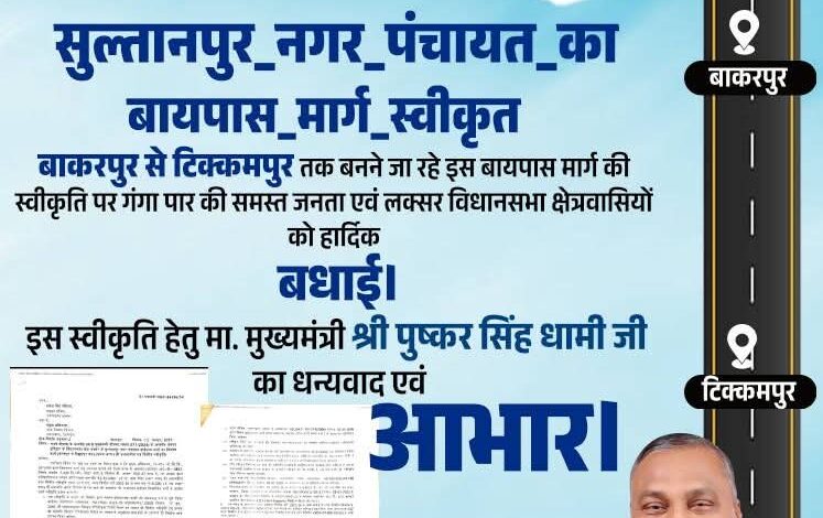 हरिद्वार/लक्सर – उत्तराखंड के यशस्वी मुख्यमंत्री श्री पुष्कर सिंह धामी की विकासपरक सोच का प्रत्यक्ष उदाहरण अब लक्सर विधानसभा में भी देखने को मिलेगा। सुल्तानपुर नगर पंचायत क्षेत्र अंतर्गत बाकरपुर से टिक्कमपुर तक बनने वाले बायपास मार्ग को शासन द्वारा स्वीकृति दे दी गई है, जिसकी आधिकारिक घोषणा होते ही गंगा पार क्षेत्र में खुशी की लहर दौड़ गई।