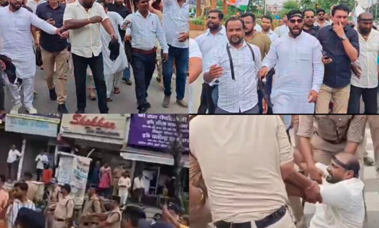 चंद्राचार्य चौक पर कांग्रेसियों और पुलिस के बीच सुरक्षा नोकझोंक,,