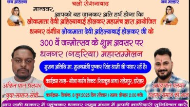 सीएम धामी करेंगे धनगर महासम्मेलन का शुभारंभ, हरिद्वार में मनेगा लोकमाता अहिल्याबाई होलकर जी का 300वां जन्मोत्सव, रोशनाबाद में उमड़ेगा धनगर समाज का स्वाभिमान