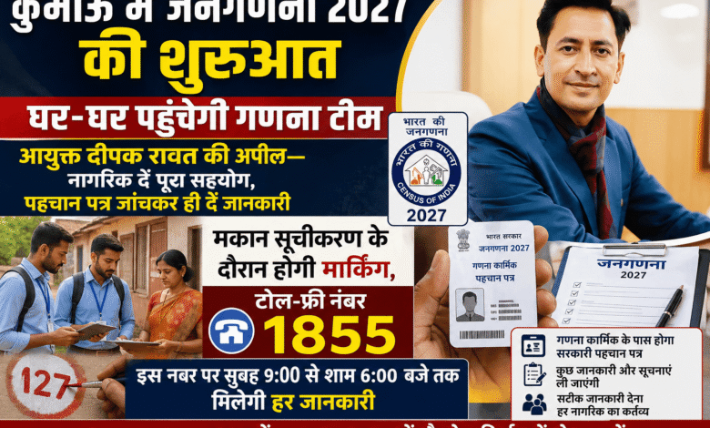 कुमाऊं में जनगणना 2027 की शुरुआत, घर-घर पहुंचेगी गणना टीम,, आयुक्त दीपक रावत की अपील—नागरिक दें पूरा सहयोग, पहचान पत्र जांचकर ही दें जानकारी,, मकान सूचीकरण के दौरान होगी मार्किंग, टोल-फ्री नंबर 1855 पर मिलेगी हर जानकारी