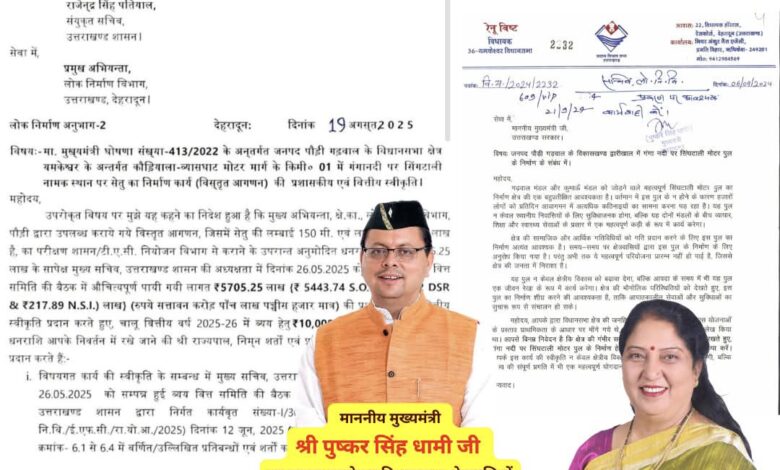 मुख्यमंत्री पुष्कर सिंह धामी ने दी सिंगटाली मोटर पुल को प्रशासनिक एवं वित्तीय स्वीकृति,, रेनू बिष्ट के दो दशक पुराने प्रयासों को मिली ऐतिहासिक सफलता,, यमकेश्वर विधानसभा की जनता को मिला बड़ा विकास उपहार