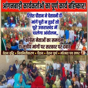 आंगनबाड़ी कार्यकर्ताओं का पूर्ण कार्य बहिष्कार! हरिद्वार में गरज उठी महिलाओं की आवाज,, रितेश चौहान ने चेतावनी दी- मांगें पूरी न हुईं तो पूरे उत्तराखंड में चलेगा आंदोलन,, कांग्रेस नेताओं का समर्थन, 11 सूत्रीय मांगों पर सरकार पर दबाव