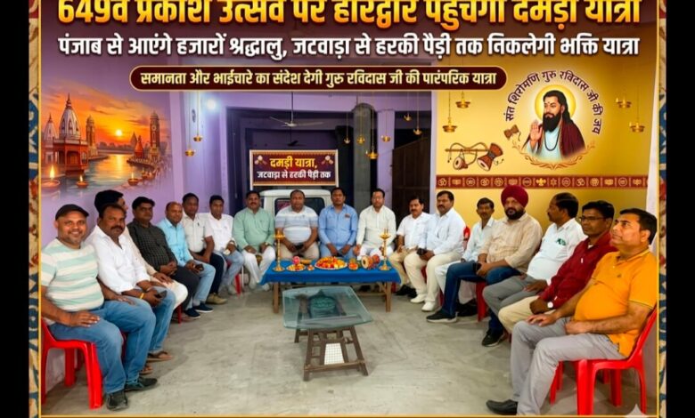649वें प्रकाश उत्सव पर हरिद्वार पहुंचेगी दमड़ी यात्रा,, पंजाब से आएंगे हजारों श्रद्धालु, जटवाड़ा से हरकी पैड़ी तक निकलेगी भक्ति यात्रा,, समानता और भाईचारे का संदेश देगी गुरु रविदास जी की पारंपरिक यात्रा