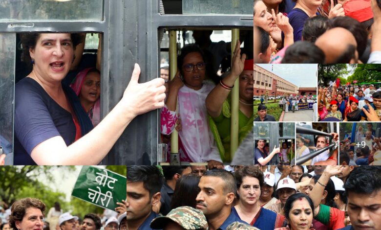 प्रियंका गांधी वाड्रा ने कहा सरकार के आगे नहीं झुकेंगे – विपक्ष का ऐलान,, वोट चोरी के खिलाफ देशव्यापी लड़ाई जारी रहेगी,, राहुल गांधी के खुलासे की जांच से भाग रहा है चुनाव आयोग – प्रियंका गांधी वाड्रा भी हिरासत में