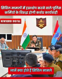 जो भी पुलिसकर्मी सिविल मामलों में दबाव, समझौते या अवैध कार्रवाई में लिप्त पाया जाएगा, उसके विरुद्ध कठोर विभागीय एवं कानूनी कार्रवाई होगी।
