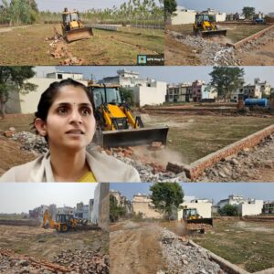 जगजीतपुर क्षेत्र में फुटबॉल ग्राउंड की जमीन पर प्रॉपर्टी कारोबारी संदीप देशबंधु और राजीव राठी द्वारा विकसित की जा रही अवैध कॉलोनी पर HRDA ने कड़ा प्रहार किया। यहां बनाए गए सभी अवैध रास्तों, बाउंड्री दीवारों और प्लॉटों को बुल्डोजर से जमींदोज कर दिया गया।