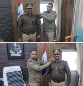 इंस्पेक्टर बने अनुरोध व्यास, एसपी चमोली ने अनुरोध व्यास उपनिरीक्षक को निरीक्षक पद पर पदोन्नति होने पर तीसरा स्टार लगाकर दी बधाई