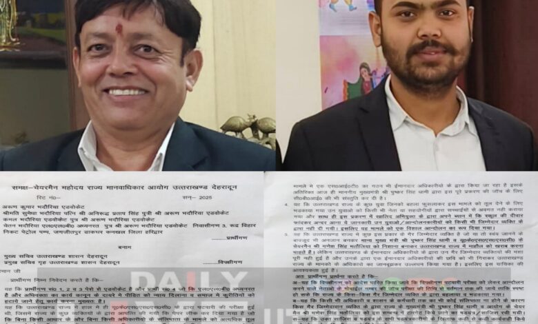 पटवारी पेपर लीक विवाद ने पकड़ा नया मोड़,, कही धामी और मर्तोलिया की ईमानदारी को निशाना बनाने की साजिश तो नहीं,, भदौरिया (बंधु)अधिवक्ताओं ने मानवाधिकार आयोग में दाखिल कर दी याचिका