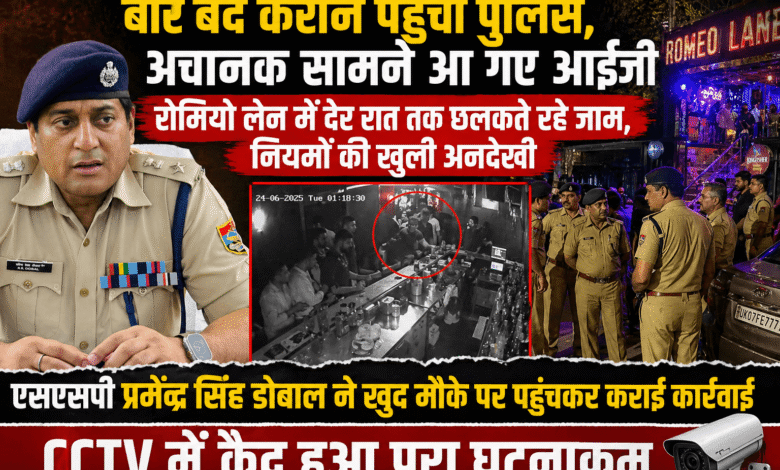 बार बंद कराने पहुंची पुलिस, अचानक सामने आ गए आईजी,, रोमियो लेन में देर रात तक छलकते रहे जाम, नियमों की खुली अनदेखी,, एसएसपी प्रमेन्द्र सिंह डोबाल ने खुद मौके पर पहुंचकर कराई कार्रवाई, CCTV में कैद हुआ पूरा घटनाक्रम