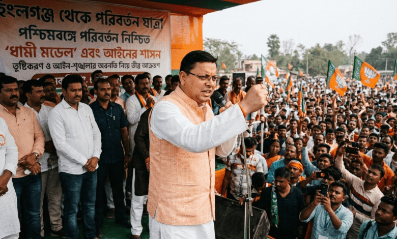 पश्चिम बंगाल में दहाड़े पुष्कर सिंह धामी,, हिंगलगंज से परिवर्तन यात्रा की शुरुआत, बड़ी जनसभा में ममता सरकार पर तीखा हमला,, ‘धामी मॉडल’ की चर्चा, तुष्टिकरण और कानून-व्यवस्था पर उठाए सवाल