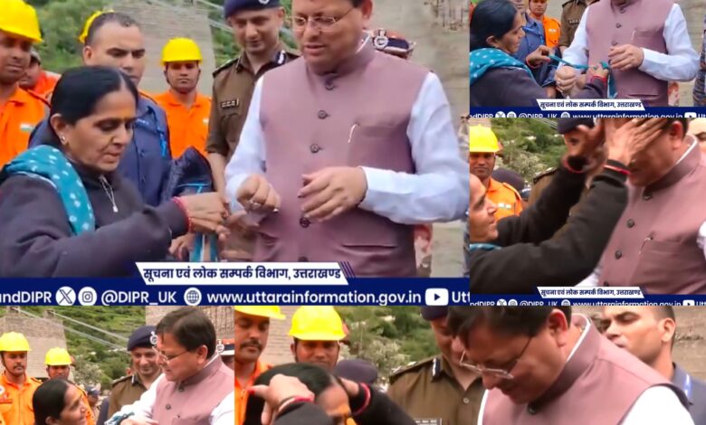 धराली में बादल फटने और मलबा गिरने से कई लोग फंसे हुए थे। एनडीआरएफ, एसडीआरएफ और प्रशासन की टीमें राहत-बचाव में जुटी थीं। मुख्यमंत्री धामी मौके पर पहुंचकर न केवल राहत कार्यों की निगरानी कर रहे थे, बल्कि प्रभावित लोगों से सीधे संवाद भी कर रहे थे। इसी दौरान गुजरात से आई महिला तीर्थयात्री ने उनकी कलाई पर दुपट्टे की राखी बांधी और भावुक होकर कहा – “आपने हमें यहां से निकालने का भरोसा दिया है, आज से आप मेरे भाई हैं।”