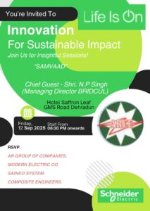 राजधानी देहरादून स्थित सैफ्रॉन लीफ़ होटल में 12 अगस्त को विद्युत और अग्नि सुरक्षा से जुड़ा एक महत्वपूर्ण जागरूकता कार्यक्रम आयोजित किया गया। इस कार्यक्रम का आयोजन स्नाइडर इलेक्ट्रिक, सन्को सिस्टम, मॉडर्न इलेक्ट्रिक एआर कंपनी एवं कॉम्पोजिट इंजीनियर्स के संयुक्त तत्वावधान में किया गया। कार्यक्रम का उद्देश्य भवन निर्माण, विद्युत कार्य और अग्नि सुरक्षा से संबंधित मानकों पर जागरूकता बढ़ाना तथा आधुनिक तकनीकों के प्रयोग को प्रोत्साहित करना था।
