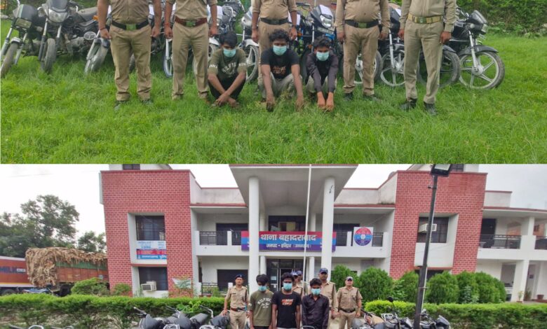 कप्तान प्रमेन्द्र सिंह डोबाल की अगुवाई में बहादराबाद पुलिस की बड़ी कार्रवाई,, अन्तर्राज्यीय वाहन चोर गिरोह बेनकाब, 03 शातिर सदस्य गिरफ्तार – 20 मोटर साइकिल बरामद,, डिजिटल सर्विलांस, मुखबिर तंत्र और सघन कार्रवाई से पुलिस को मिली बड़ी सफलता
