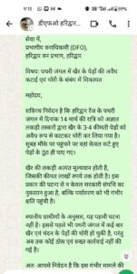 इस पूरे मामले को लेकर सामाजिक कार्यकर्ता मौ. सलीम, निवासी ग्राम घिस्सुपुरा, पोस्ट धनपुरा, थाना पथरी ने प्रभागीय वनाधिकारी (DFO) हरिद्वार को एक लिखित शिकायत पत्र सौंपा है।