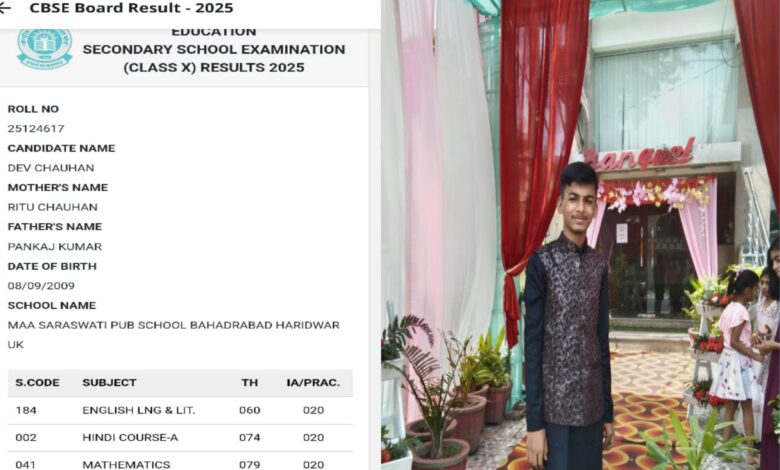 मां सरस्वती पब्लिक सीनियर सेकेंडरी स्कूल बहादराबाद के होनहारों ने लहराया परचम, सीबीएसई 2024 परीक्षा में करीब शत-प्रतिशत परिणाम, देव चौहान बना टॉपर, हासिल किए 96.8 फीसदी अंक